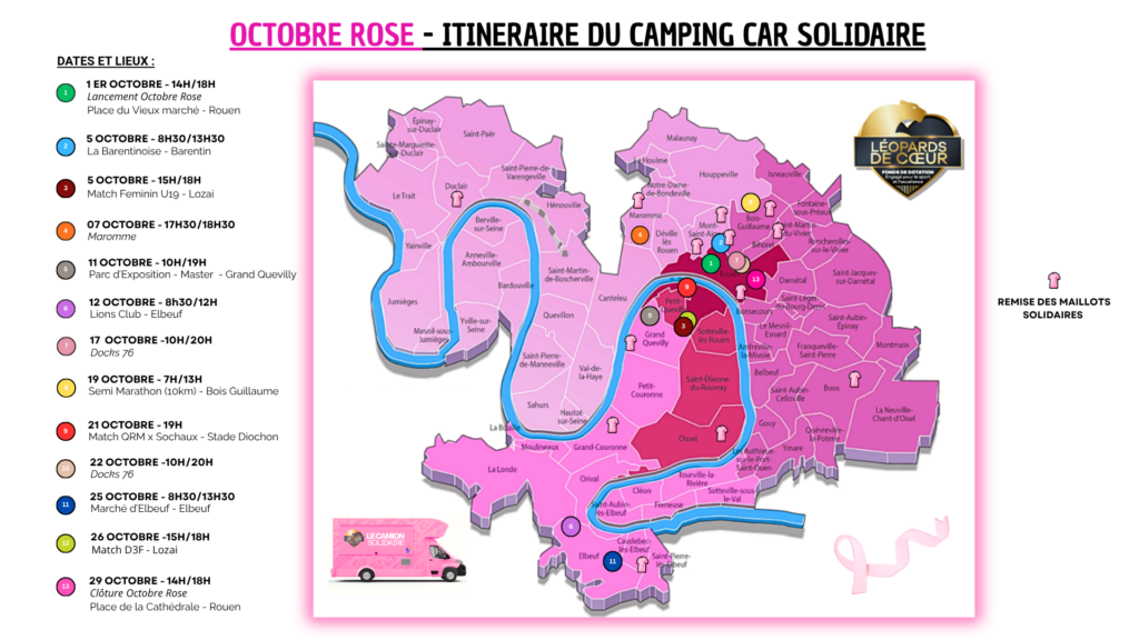 À l’occasion d’Octobre Rose 2025, les Léopards de Cœur se mobilisent une nouvelle fois pour la lutte contre le cancer du sein, en partenariat avec la Ligue contre le cancer. À mi-parcours de cette campagne de sensibilisation itinérante, l’association dresse un premier bilan riche en émotions, en rencontres et en engagement collectif, mêlant sport, solidarité et prévention à travers toute la métropole rouennaise.